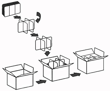 compact ou ondulé et l'insertion en caisse carton.