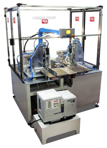 La MAG 2 est une machine semi-automatique pour la pose d’une ou deux paires d’aimants. Le carton est pris et maintenu par des pinces de transport, fraisé pour réaliser l’emplacement de l’aimant, une goutte de colle est appliquée au fond du logement, l’aimant est ensuite posé automatiquement.