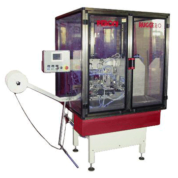 Machine automatique la pose de jonctions métalliques sur des cordons ou élastiques ronds (Ø max 3 mm).
